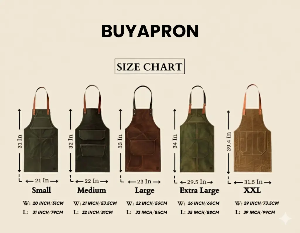 Our aprons are adjustable. If needed, we offer easy exchanges.